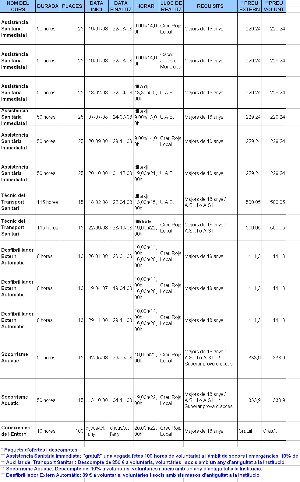 Creu Roja obre les inscripcions als nous cursos del 2008