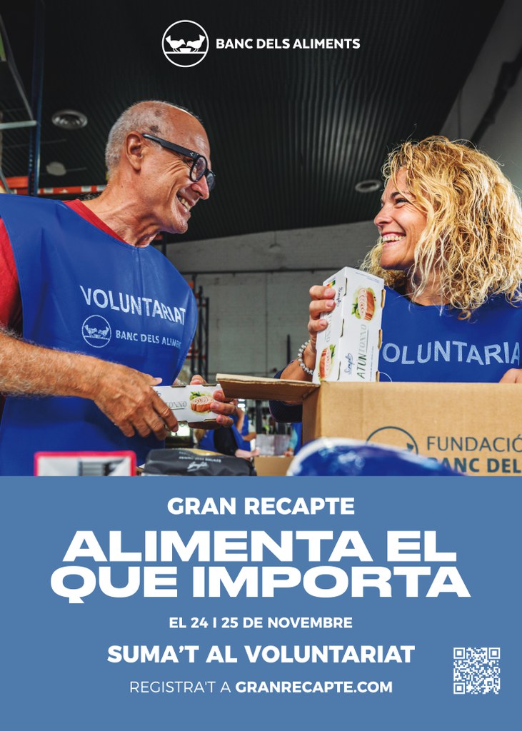 Ja s'està preparant una nova edició del Gran Recapte d'Aliments, que tindrà lloc els dies 24 i 25 de novembre. Com és tradicional, es durà a terme la recollida física d'aliments als establiments col·laboradors amb presència de voluntaris. Des del Banc dels Aliments demanen, un any més, la col·laboració de les persones per omplir de voluntaris totes les franges horàries als supermercats i botigues que en prenen part.