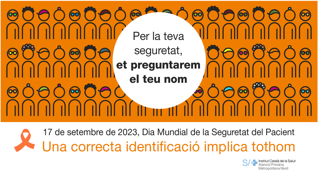 El passat 17 de setembre es va commemorar el Dia Mundial de la Seguretat del Pacient, impulsat per l’Organització Mundial de la Salut (OMS), i coincidint amb aquest dia, l’àrea d'Atenció Primària Metropolitana Nord de l’Institut Català de la Salut (ICS) va iniciar una campanya per conscienciar i sensibilitzar la ciutadania de la importància de realitzar una correcta identificació del pacient abans de donar-li qualsevol mena d’atenció.