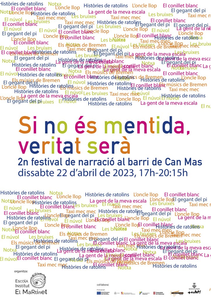 Al llarg de tota la tarda, es podrà gaudir de relats, contes, teatralitzacions i narracions a quatre escenaris repartits pel barri de Can Mas. Els escenaris estaran ubicats al parc del Primer de Maig, a la rambla de Sant Jordi 125, al carrer de Girona 3, i al parc de Carles Ferré. El festival, que porta per títol "Si no és mentida, veritat serà", tindrà lloc de 17 a 20 h, i els relats que s'explicaran estaran adreçats a infants i joves de 3 a 15 anys.