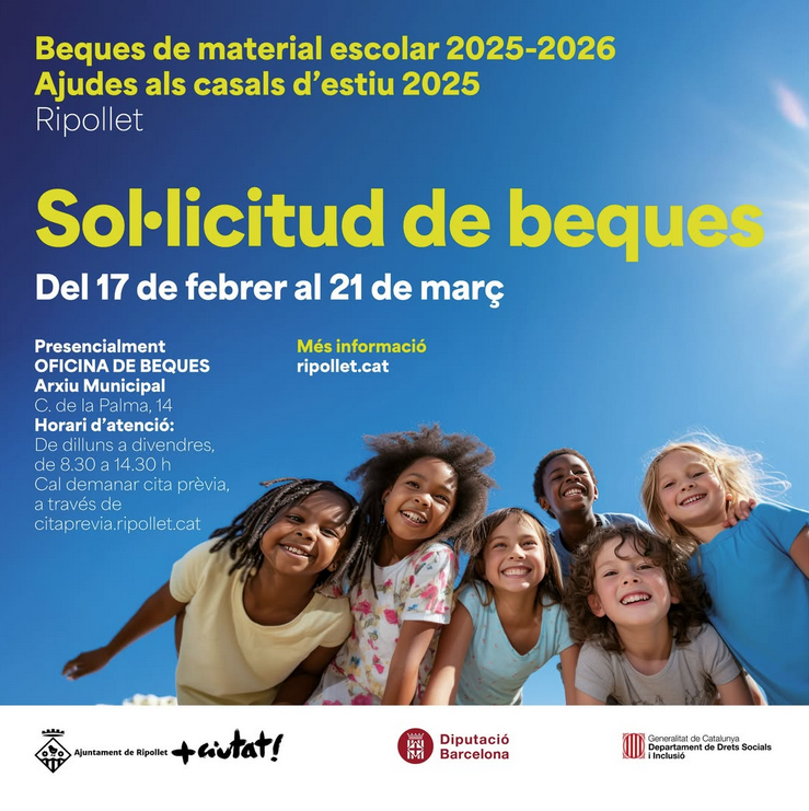 Després de l’alta demanda de l’any passat, amb prop d’un miler de sol·licituds, des del 17 de febrer al 21 de març de 2025, ambdós inclosos, s'obrirà el termini per a presentar les sol·licituds de beques per a material escolar per al curs 2025-2026 del segon cicle d'educació infantil, educació primària i educació secundària obligatòria, destinada a cobrir les despeses de material escolar, llibres i tots els documents, fotocòpies, i altres materials fungibles necessaris per completar i/o potenciar l'aprenentatge de l'alumne/a en el centre escolar.