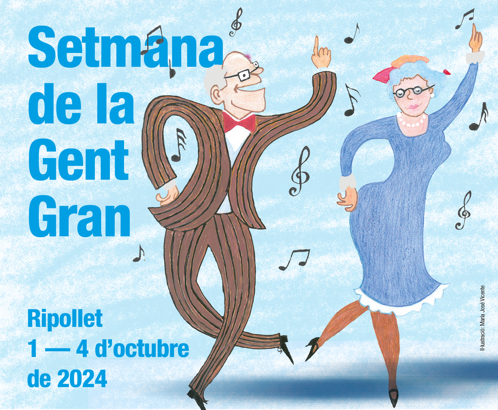Un alegre dibuix de persones grans ballant, de Maria José Vicente, il·lustra enguany el cartell de la Setmana de la Gent Gran a Ripollet, que se celebra la setmana de l’1 d’octubre, Dia Internacional de la Gent Gran. La quarta edició d’aquesta celebració torna a comptar amb activitats, principalment, lúdiques, però també culturals, esportives i de divulgació. Un programa per a celebrar la vellesa, com una etapa plena d'oportunitats i redescobriments, i per a fomentar l’intercanvi intergeneracional, compartir vivències i, sobretot, gaudir i divertir-se en bona companyia.