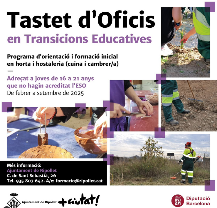 L’Ajuntament de Ripollet, a través de Ripollet Impulsa, posa en marxa la 6a edició del 'Tastet d'oficis en transicions educatives' adreçat a joves d’entre 16 i 21 anys que no han acreditat l'ESO.