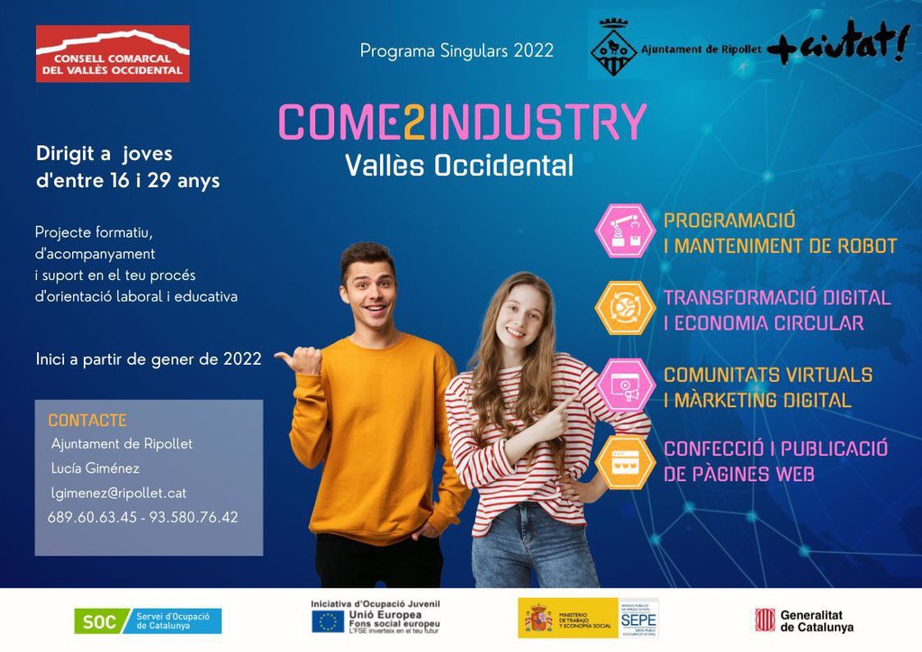 L'Ajuntament de Ripollet ha posat en marxa el Projecte Singulars 2022, en coordinació amb el Consell Comarcal del Vallès Occidental i en agrupació amb els ajuntaments de Montcada i Reixac, Badia i Barberà; la fundació Eurecat; l'Escola Tècnica del vestir; l'Associació Bàsquet Beat, i l'Associació Epona. Enguany es torna a posar el focus en la indústria de la comarca, especialment en el treball de les vocacions industrials, donant un pes específic a les funcions del màrqueting digital industrial, a la creació d'entorns virtuals en l'àmbit de la indústria i a la sostenibilitat, que es constata ja com una realitat imprescindible al món laboral. Des de Ripollet Impulsa, es convida a participar-hi a totes aquelles persones joves que reuneixin les condicions i estiguin interessades a realitzar alguna de les actuacions previstes.