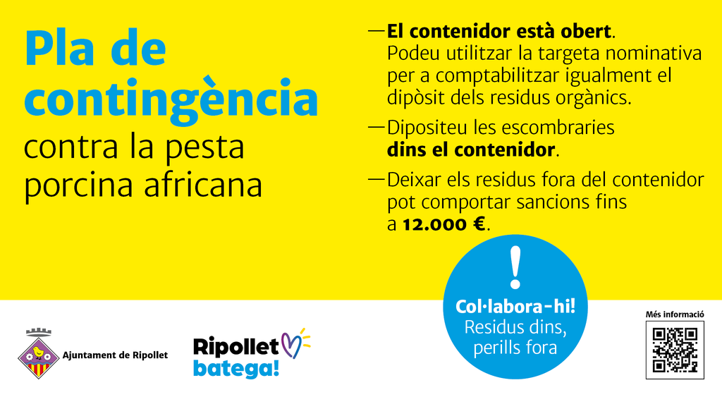 A propòsit d'això, l’Ajuntament ha fet una crida a la col·laboració ciutadana per a aquestes tasques de prevenció i contenció. També ha recordat que l’incivisme en temes d'escombraries i neteja; i més en la situació d’alerta actual; pot ser sancionat amb importants multes.