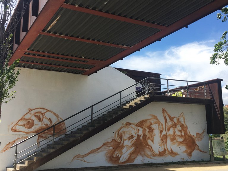 Aquest dimecres, 24 d'abril, l'artista cordovès Sake Ink ha iniciat al mur de la passarel·la de vianants un mural animalista. A proposta de l'entitat Animales Ripollet, la Regidoria de Protecció Animal va mantenir converses amb l'il·lustrador i muralista, conegut també per la seva lluita contra el maltractament animal. El mural, realitzat de forma altruista per Sake ink, formarà part de la campanya 'Adopta', impulsada per l'artista andalús. Es preveu que estigui enllestit a mitjans de la setmana vinent.