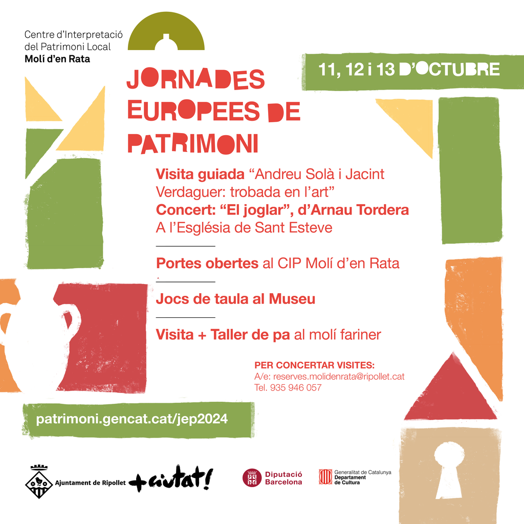 Aquest octubre Ripollet s’omple d’activitats per les Jornades Europees de Patrimoni de 2024. Amb el lema “Itineraris, xarxes i connexions” aquest any les Jornades, que enguany coincideixen amb la celebració del 70è aniversari de la Convenció Cultural Europea, fan èmfasi en la gran xarxa de connexions entre les històries culturals i com aquestes han evolucionat.