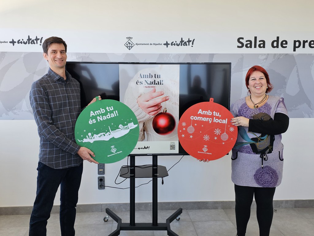 La regidora de Comerç, Eva Herrera, i el regidor de Cultura, Patrimoni i Política Lingüística, Roger Bayó, han presentat aquest matí la campanya de Nadal d'enguany, així com les novetats i el programa d'activitats. Sota el lema 'Amb tu és Nadal!', enguany es vol reconèixer "que, més enllà de la feina que es fa des de l'Ajuntament i des de les entitats, és la ciutadania la que, amb la seva participació, fa que a Ripollet es visqui Nadal amb alegria i il·lusió, amb gent al carrer i també al comerç local", ha explicat la regidora. Una campanya amb què es vol agrair la implicació de la ciutadania, "perquè són els veïns i veïnes de Ripollet els que fan Nadal i fan comerç". El programa compta amb una trentena d'activitats i diverses novetats, tant comercials com culturals, on no faltarà la gastronomia típica d'aquesta època i els pessebres, que enguany celebren els 800 anys.
