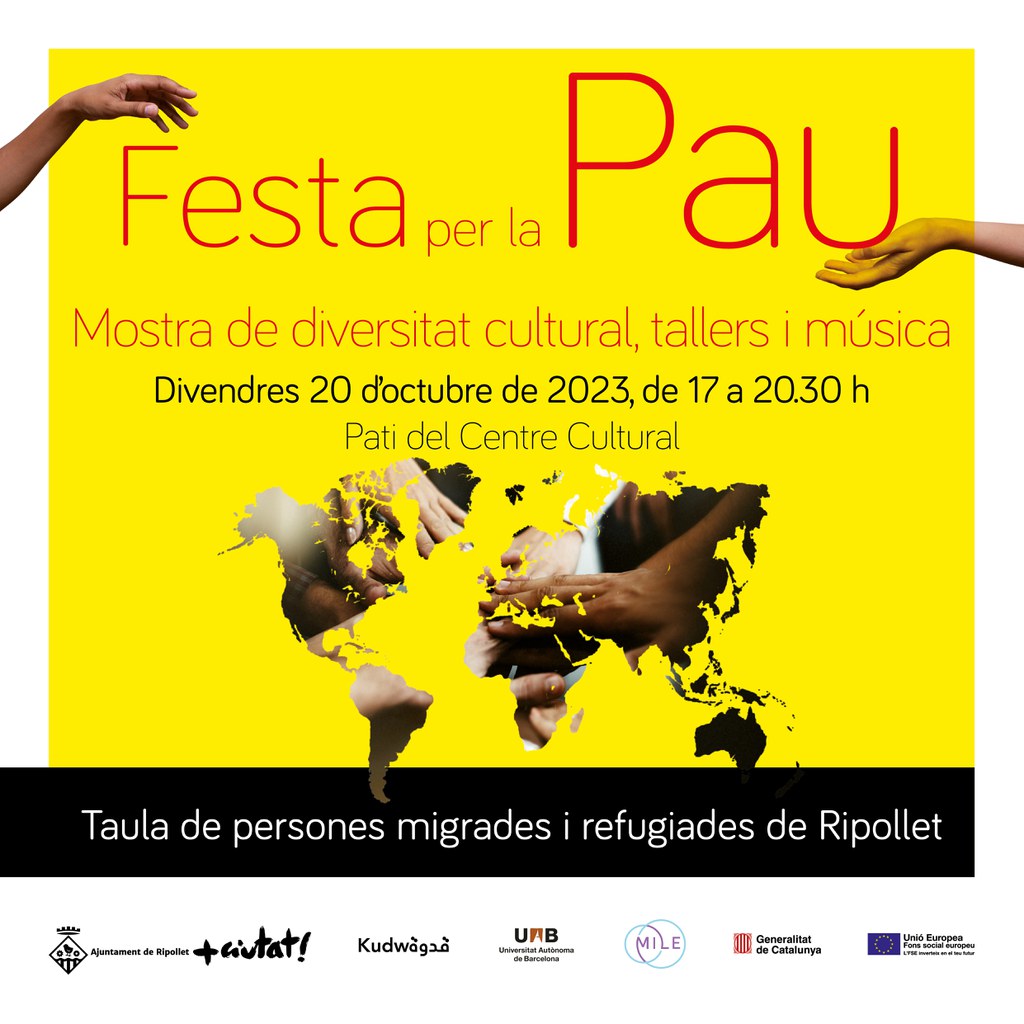 L’acte suposa la cloenda del treball fet en el marc del projecte MILE, a través del qual s’ha treballat per a constituir la Taula de persones migrades i refugiades de Ripollet. Comptarà amb tallers, espai de testimoniatge i música per la pau.