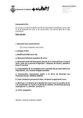Ple ordinari del 19 de desembre de 2019