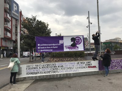 El vinil va ser col·locat a la plaça del Molí dins el marc de les activitats del 8M, Dia Internacional de les Dones. En ell es podien veure tres dones amb el braç alçat i el predomini del color lila.