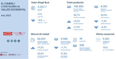 L'Observatori Comarcal ha publicat aquesta setmana la primera edició d'"El Comerç i l'Hostaleria al Vallès Occidental", un recull sintètic i visual de dades que permeten obtenir una radiografia de la contribució del comerç i l'hostaleria a l'economia comarcal durant el 2022. En el cas de Ripollet, consten 330 establiments.